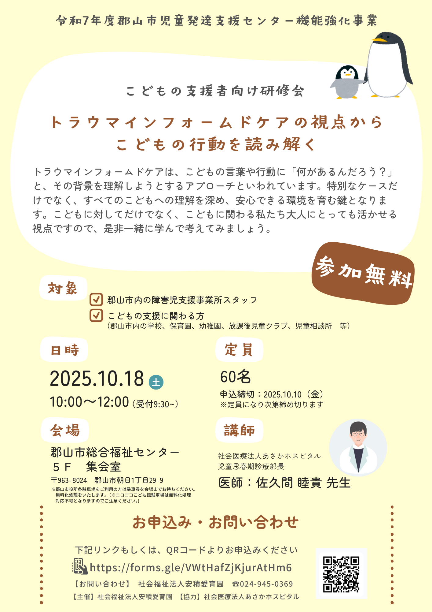 こどもの支援者向け研修会 「トラウマインフォームドケアの視点からこどもの行動を読み解く」