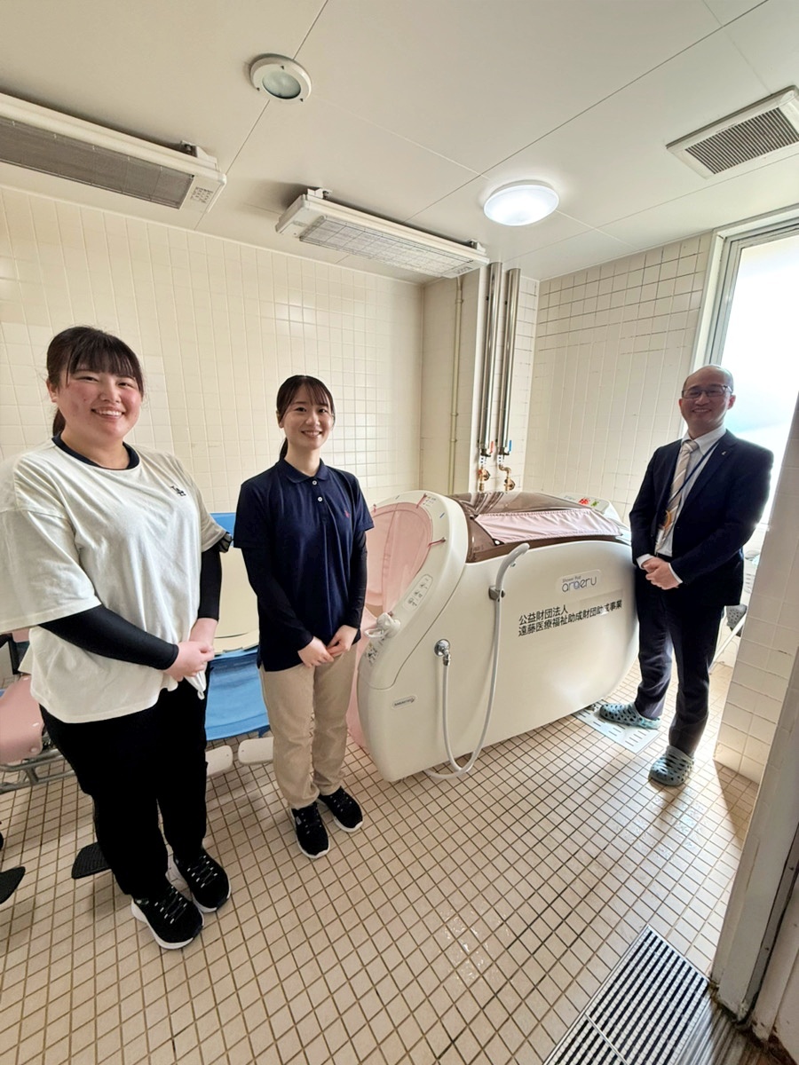 こちらのシャワー浴は、身体への負担が少なく、ウルトラファインバブルによる体の芯まで温まるやさしい温水で全身を包み込む入浴方法であり、ご利用者の皆さまに、より安全で快適な入浴時間をご提供することが可能となります。
