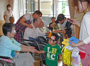 園児と共同で花壇づくりやいも掘りなどに参加したり、七夕会や敬老会では、園児が歌やお遊戯を披露してくれます。