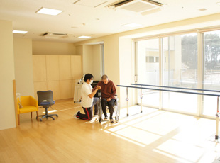 機能訓練室には、明るい日差しがさし込みとても心地よい空間となっています。