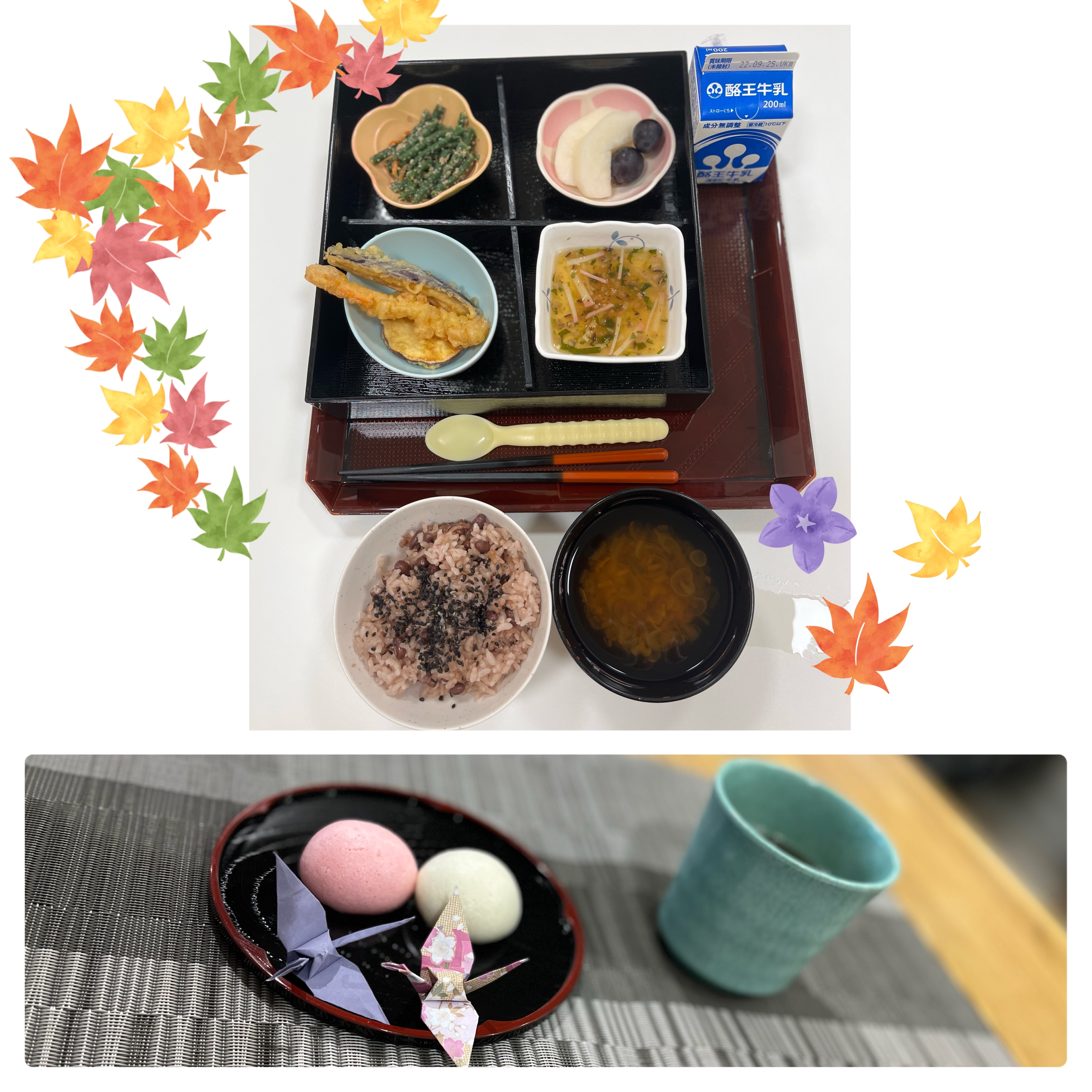 お昼ご飯は、お祝い膳とおやつに紅白饅頭を提供させて頂きました。特にお赤飯は好評でした(*^-^*)