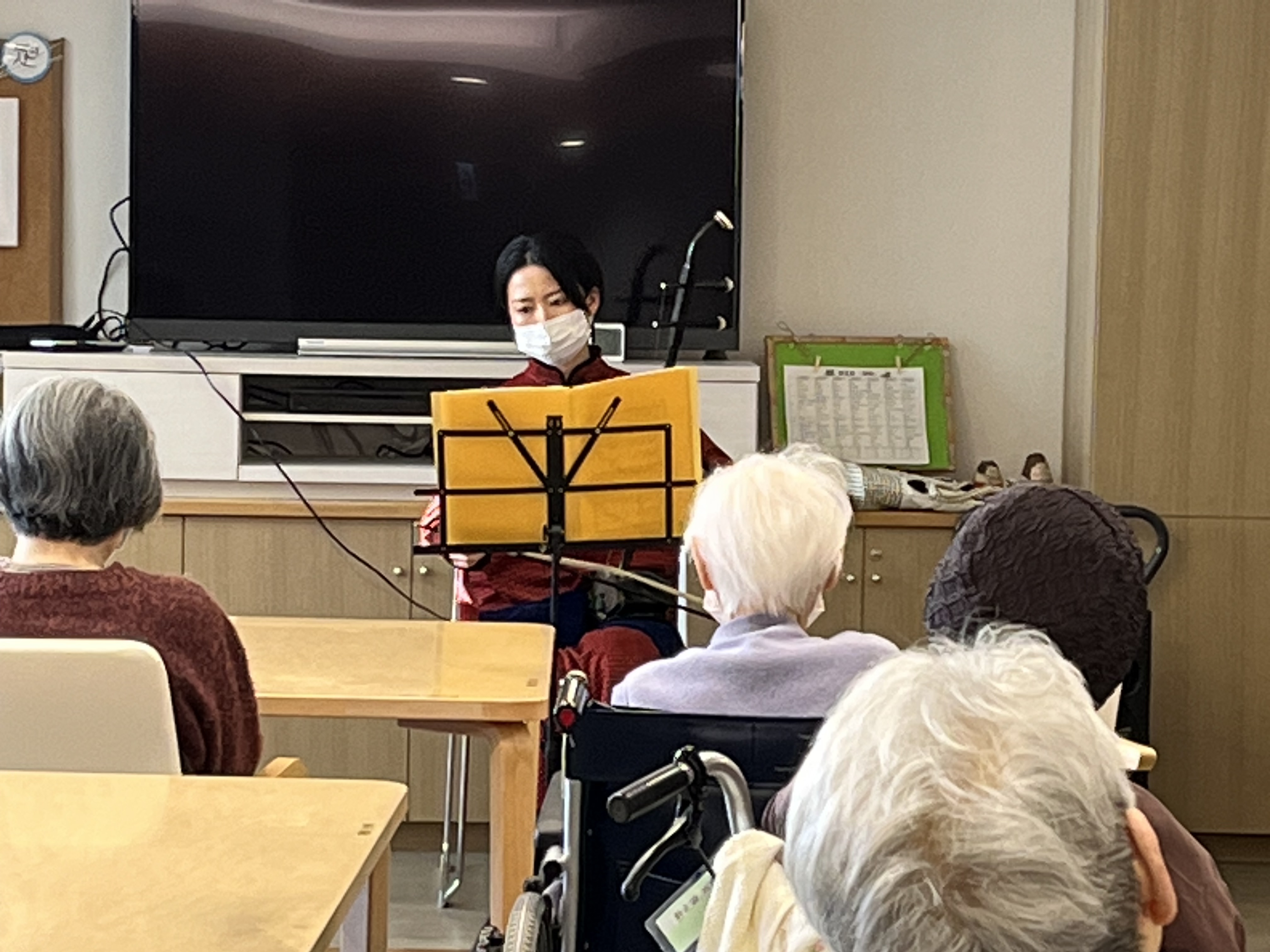 中国古典楽器二胡演奏者の吉宗瞳様をお迎えし、演奏会を各階の食堂ホールにて行いました。