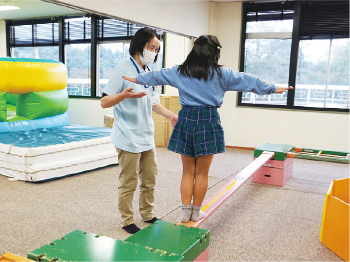児童思春期領域の作業療法は「遊び」という作業を介して発達を促しています。児童思春期病棟のお子さんに個別活動や集団活動により、楽しむ体験・他者と過ごす体験・社会性の獲得等の支援を行っています。児童外来のお子さんには、感覚統合療法などをもとに、生活環境で適応的な行動がとれるよう、支援を行っております。どちらも個々の目標を達成させるため、自己肯定感や自己効力感を高められるよう取り組んでいます。