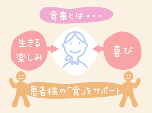 食事とは、私たちに「生きる楽しみ・喜び」を与えてくれるものです。私たち栄養科は、入院されている患者様の生活を「食」の面からお手伝いしています。